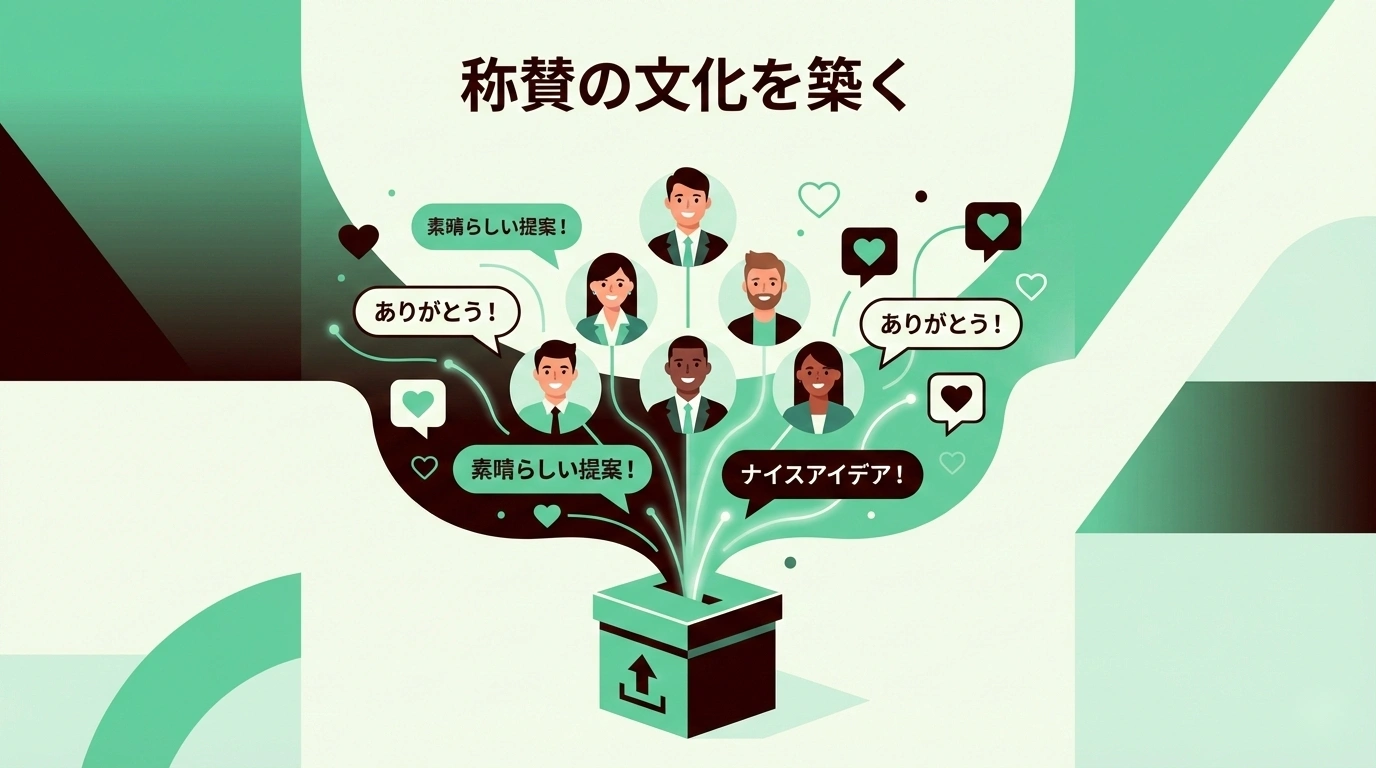 称賛は、個人間でやりとりするだけでなく、組織全体に見えるようにすることが重要です。