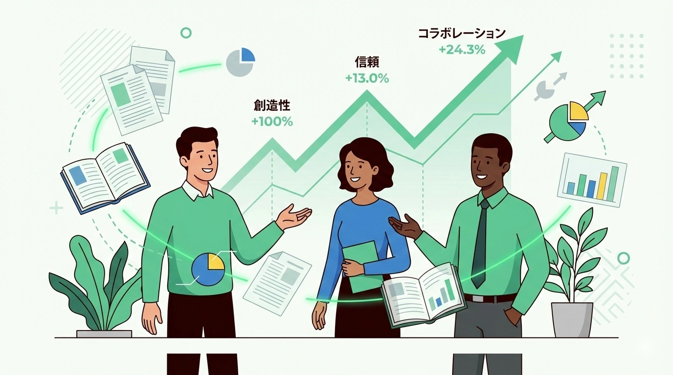 この研究が示しているのは、雑談と業務は「別物」ではなく、地続きであるという事実です。雑談を通じて築かれた人間関係が、業務上の情報共有をスムーズにし、連携のスピードを上げていました。