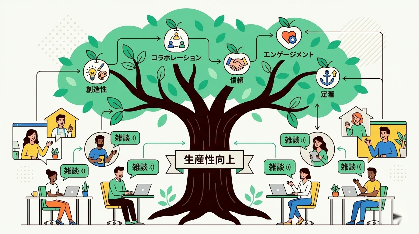 これらは「雑談を失ったことの代償」です。人間は機械ではありません。業務の生産性は、スキルや時間配分だけでなく、チーム内の信頼関係、心理的安全性、情報の流通量に大きく左右されます。そして、雑談はこれらすべてを支える「見えないインフラ」だったのです。