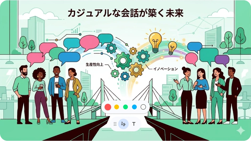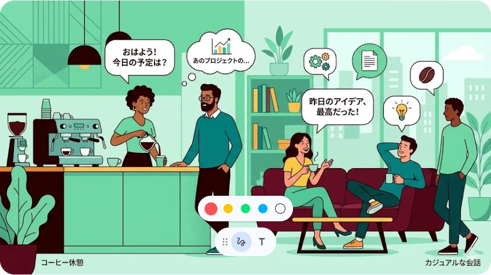 オフィスに全員が出社していた時代は、エレベーター前やコーヒーマシンの横で雑談が勝手に発生していました。しかし働き方が多様化した現在、雑談は「設計」しなければ起きないのです。