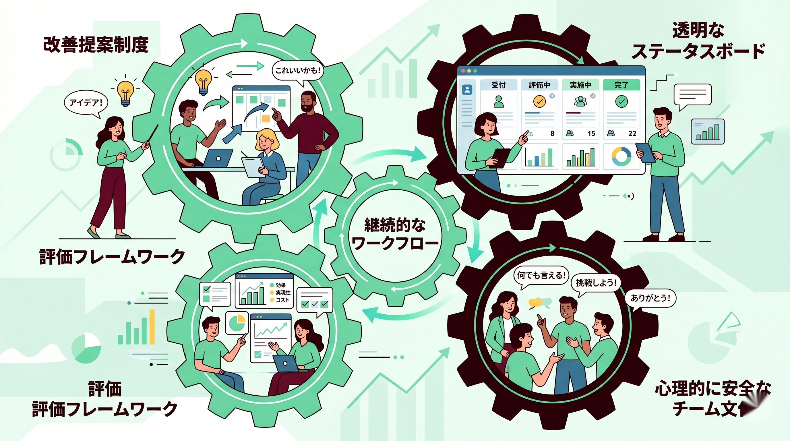 日常的に改善案が集まる仕組みを、4軸で整理します