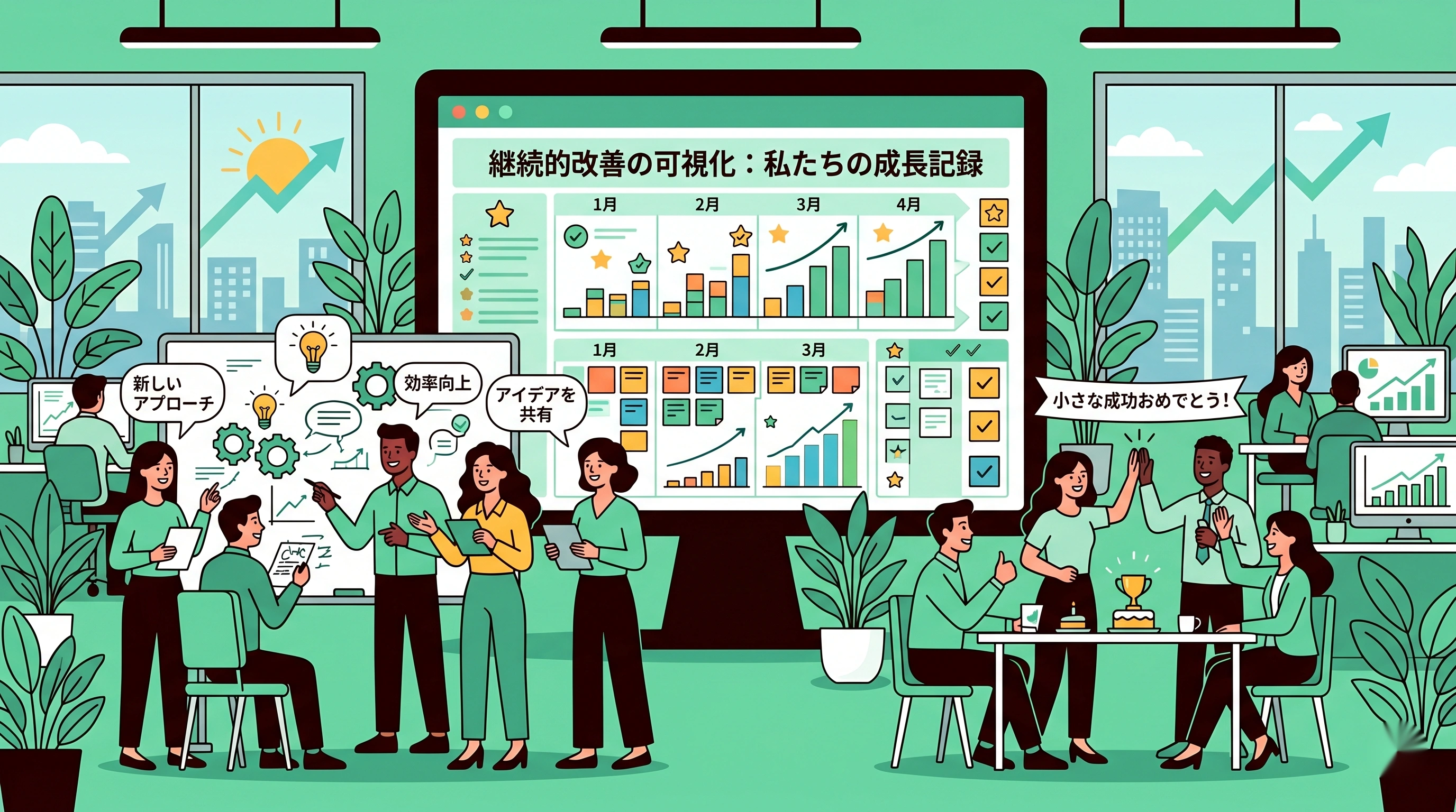 業務改善は本来、毎日・小さく・継続的に起きるべきものです。年に一度の晴れ舞台よりも、日々の「あ、この手順変えたほうが早いな」というちいさな気づきが組織の中で自然に流通する仕組みのほうが、改善の総量は桁違いに大きくなります。