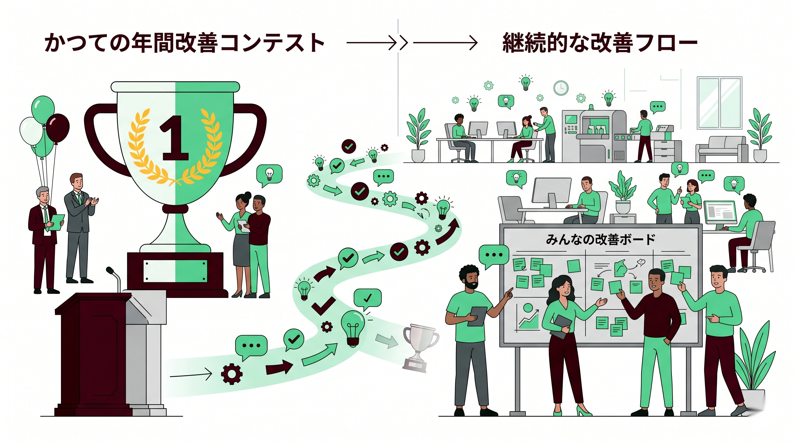 これらはすべて、**「改善=特別なイベント」**という前提が生んでいる歪みです。日常の改善を当たり前にする組織では、むしろコンテストのような仕掛けはほとんど必要ありません。