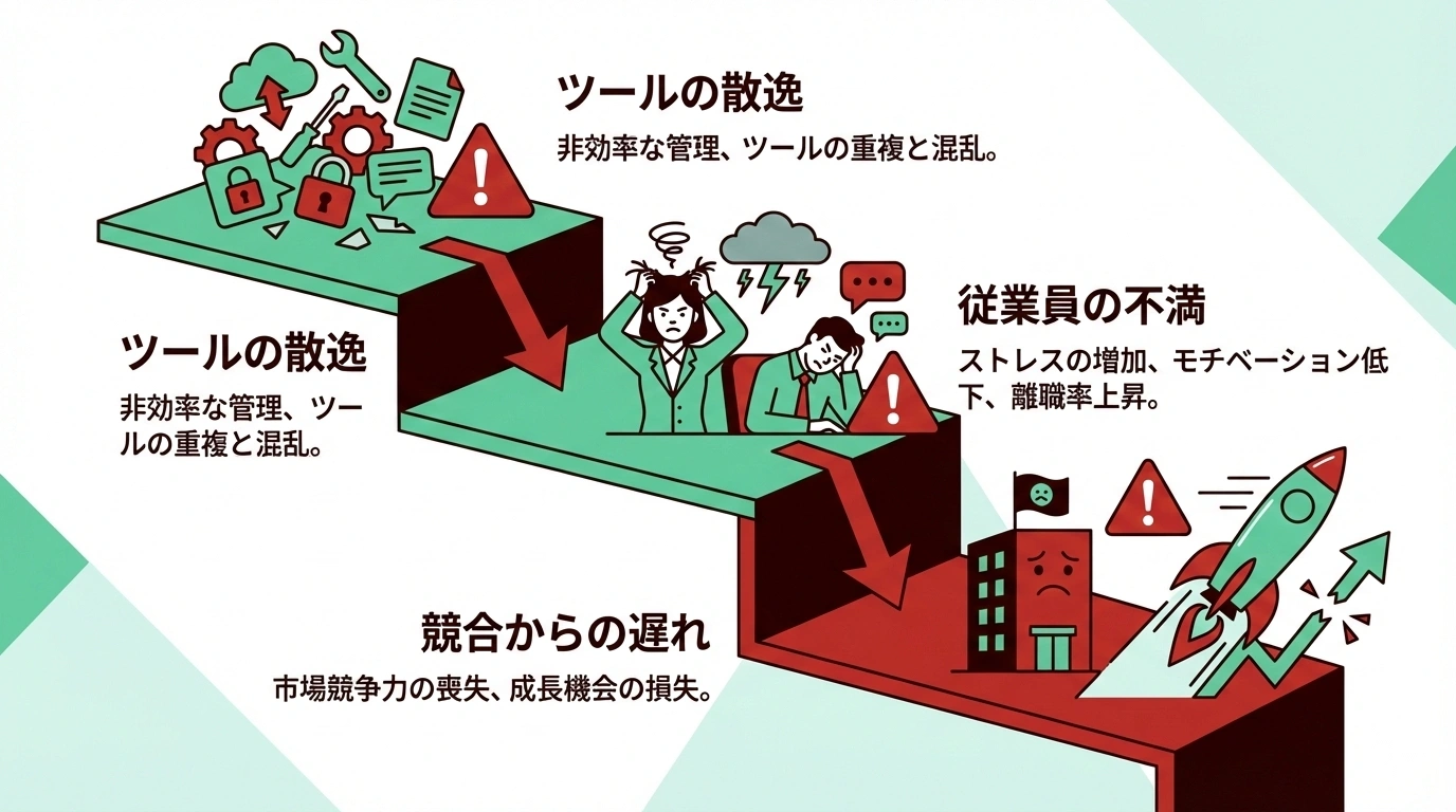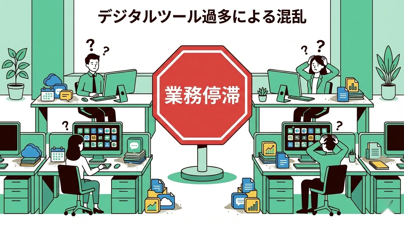 DX推進が「ツールの導入」で止まってしまう企業の末路は、ツール疲れによる社員の拒絶、情報の分散、そして競合との静かな差の拡大です。