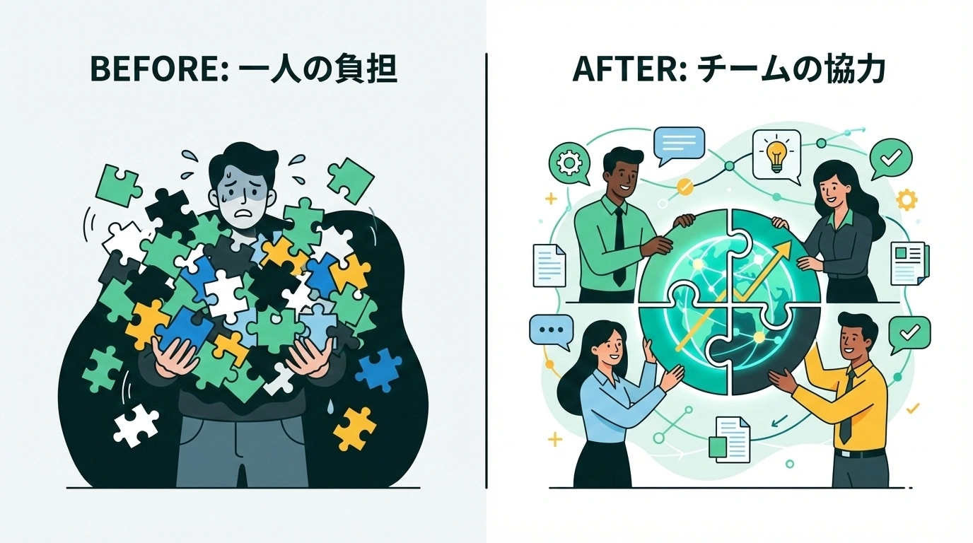 つまり、属人化は「やる気の問題」ではなく「仕組みの問題」なのです。個人の努力に頼るのではなく、組織としてナレッジ共有が自然に起きる仕組みを作る必要があります。