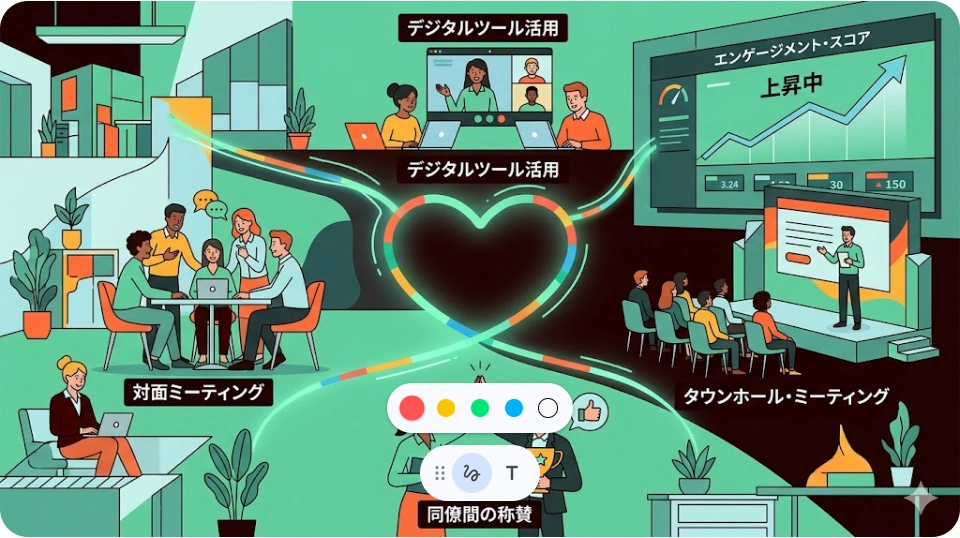 社員の声に耳を傾け、対話を重ねる組織は、必ずエンゲージメントが高まります。今日から最初の一歩を踏み出しましょう。