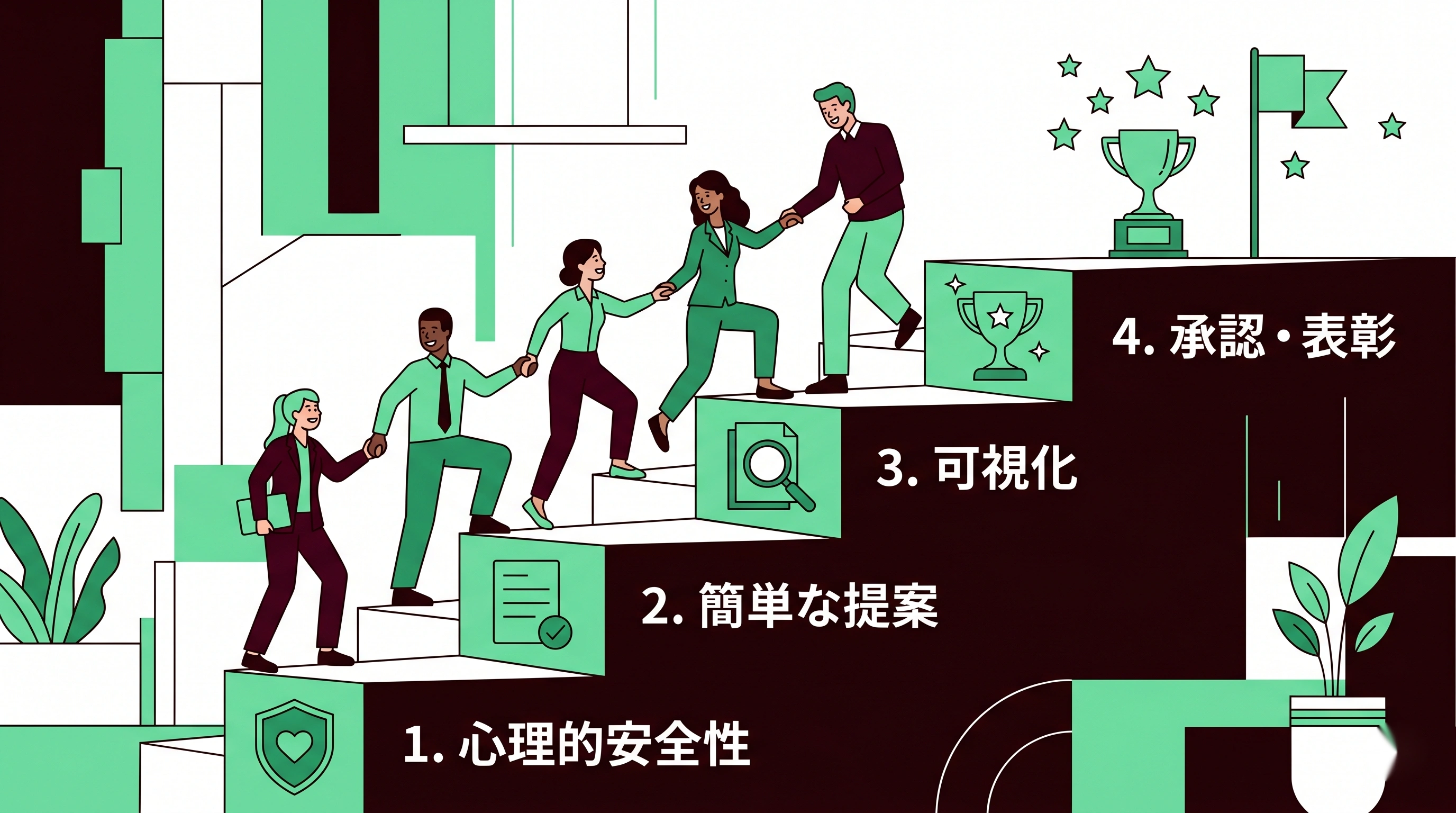 この記事では、社員が自発的に改善提案を出し、主体的に動く組織を作るための環境設計の方法を、4つのステップで解説します。