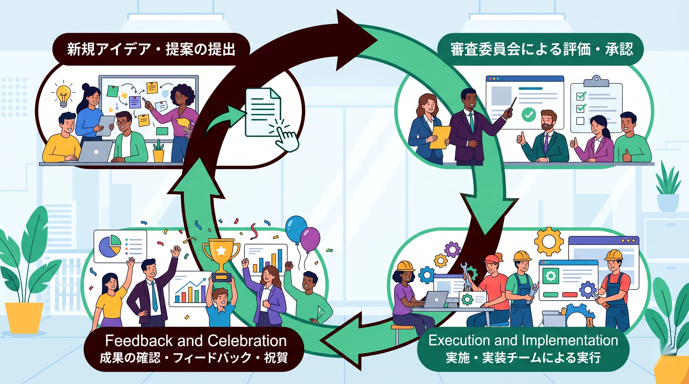- 提案した人が報われる評価制度をつくる:行動を認め、成功体験を物語として共有