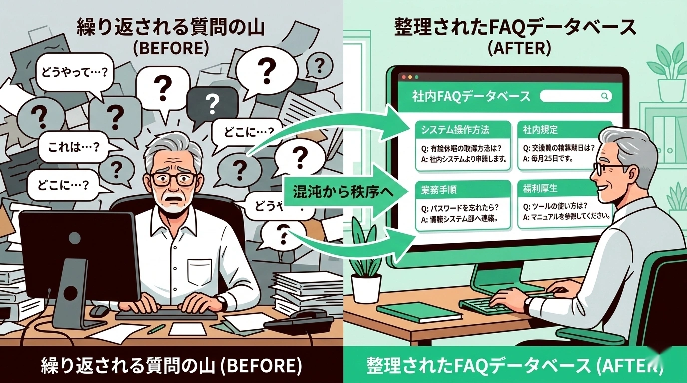 ここで提案したいのが、**「質問箱(FAQ)のデータベース化」**というアプローチです。
