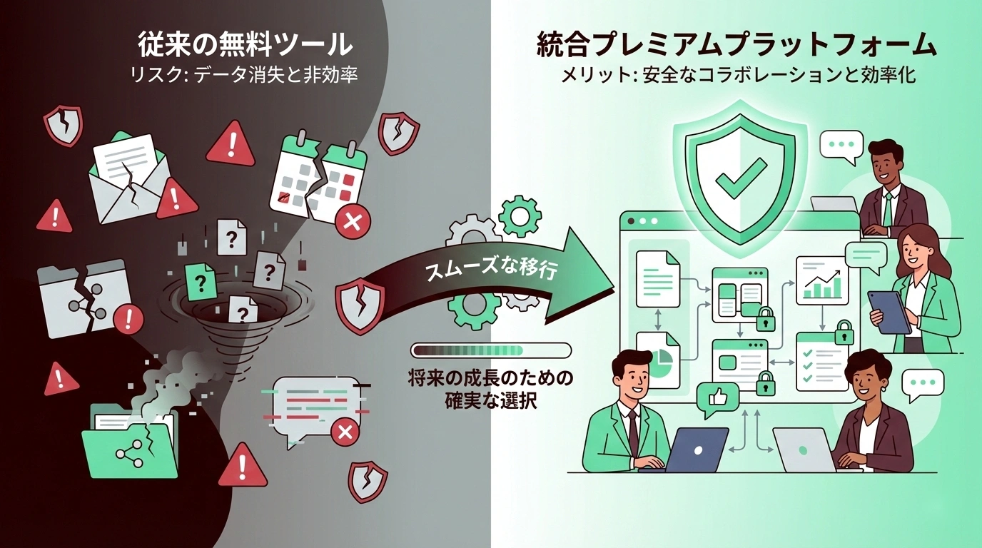 無料ツールのリスクを正しく理解し、有料ツールに切り替えるべきタイミングを見極めること——それが、組織の情報共有を次のステージへ進める第一歩です。