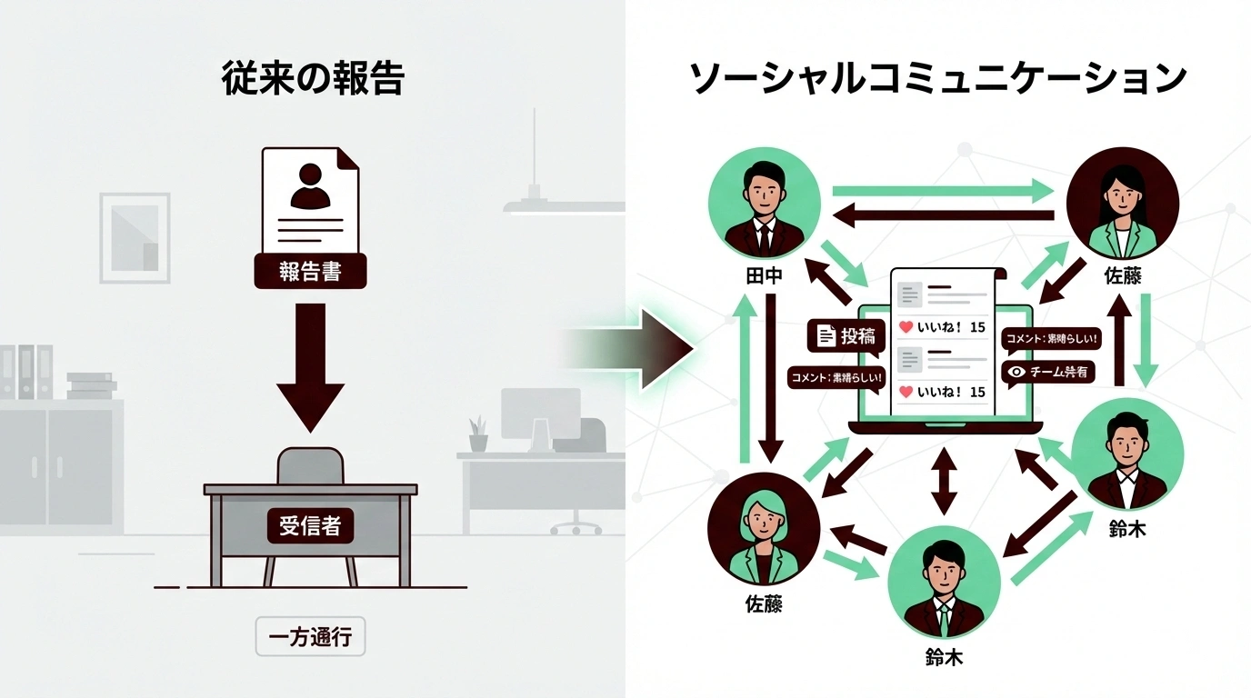社内SNSを日報として活用することで、従来の「提出して終わり」の日報が、双方向のコミュニケーションと組織全体の情報共有の起点に変わります。