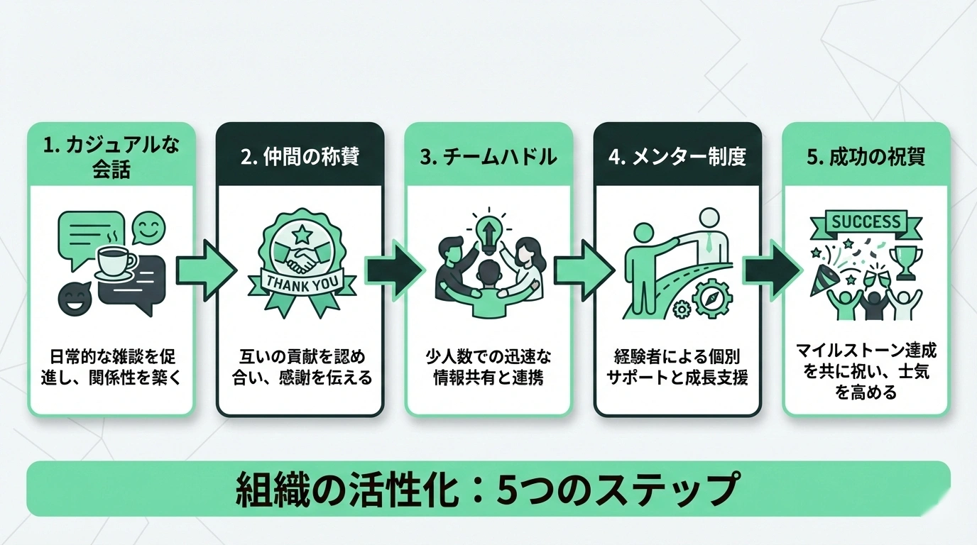 もし心当たりがあれば、まずはチームメンバーとの雑談の機会を1つ増やすことから始めてみてください。小さな変化が、大きな違いを生むことがあります。