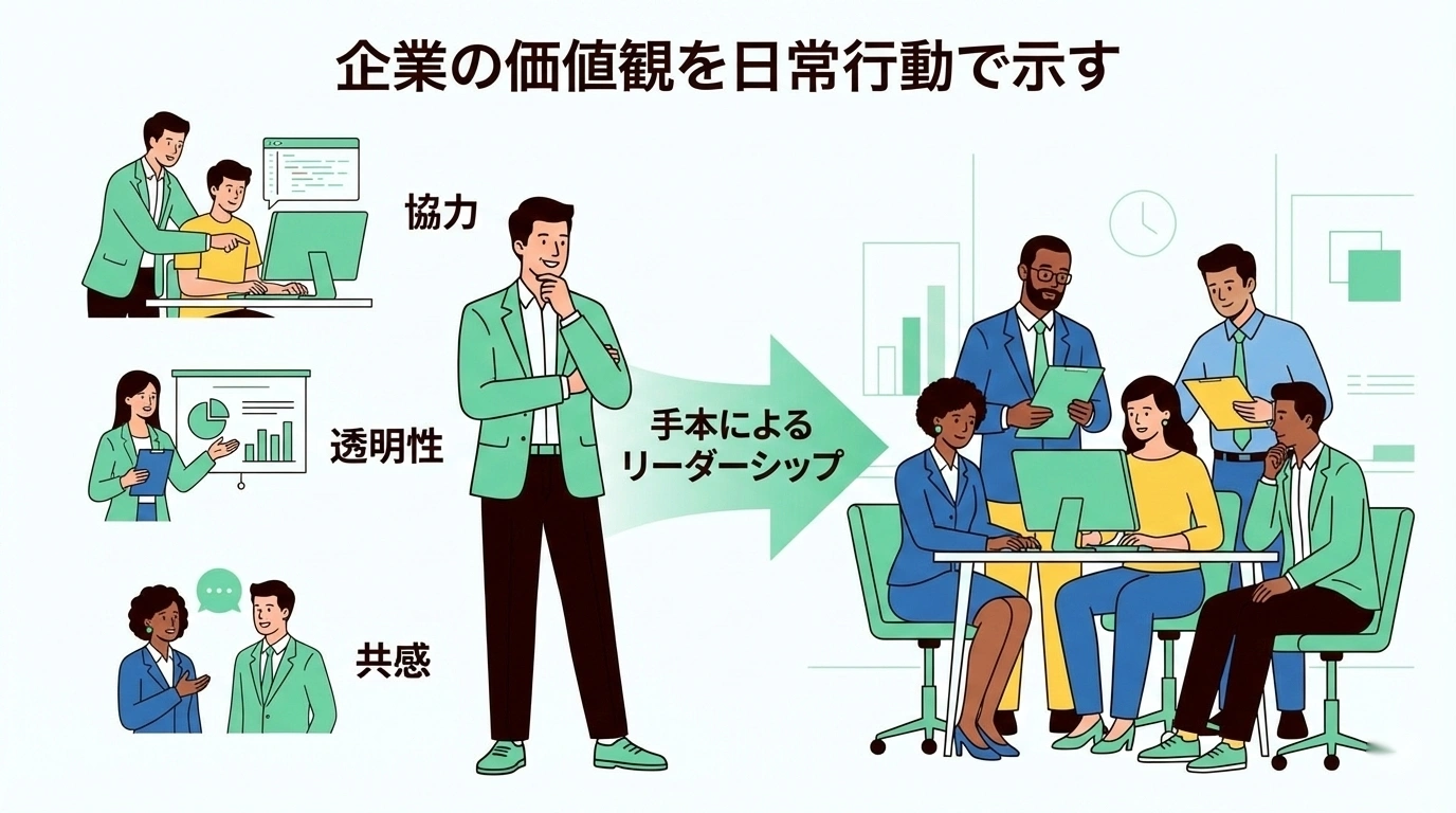 従業員は、経営陣や上司の行動をよく見ています。どれだけ立派な理念を掲げても、マネージャーが理念と矛盾する行動を取っていれば、「結局、理念は建前なんだ」と感じてしまいます。