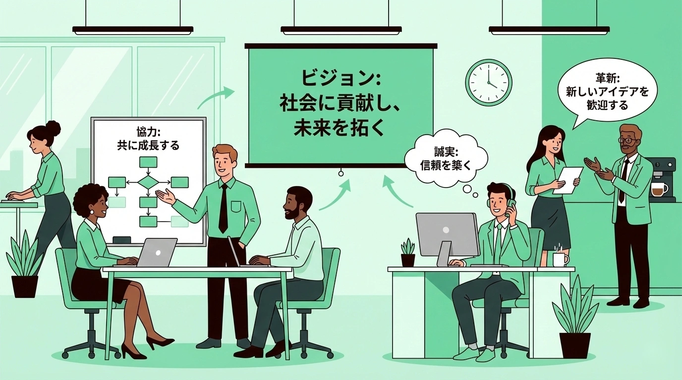 どの企業にも、こうした経営理念やバリューが存在します。創業者の想いや、会社が大切にすべき価値観を言葉にしたものです。