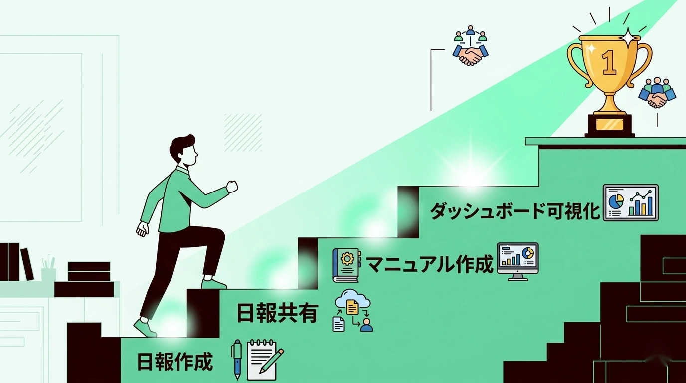 日報がナレッジ共有のハブとして機能し始めると、属人化していた改善ノウハウがチーム全体に広がります。Aさんの改善がBさんの業務にも応用できる、という連鎖が自然と生まれるのです。
