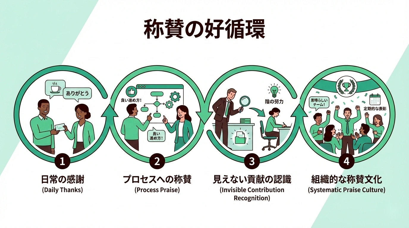 この「称賛の循環」が、組織風土を根本から変えていきます。