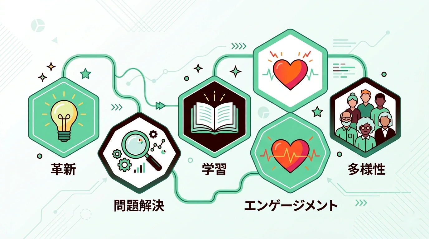 - イノベーション加速、問題早期発見、学習速度向上、エンゲージメント向上、多様性活用の5つのメリットがある
