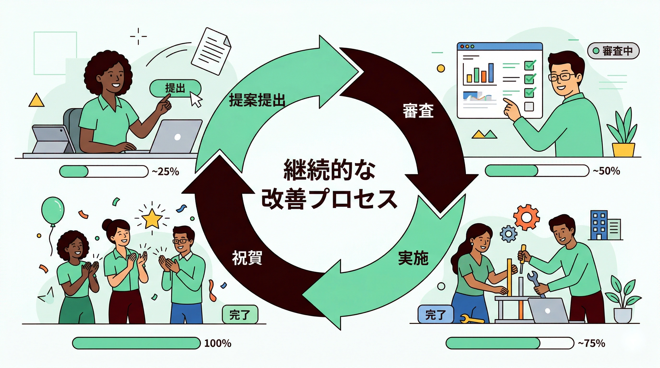 このように**「誰の、どんな小さな気づきが、どう育って、どんな成果につながったか」をストーリーとして共有することで、聞いている社員の中に「自分にもできるかも」という感覚が芽生えます。これが、改善提案制度を「仕組み」から「文化」**に変える決定的なポイントです。