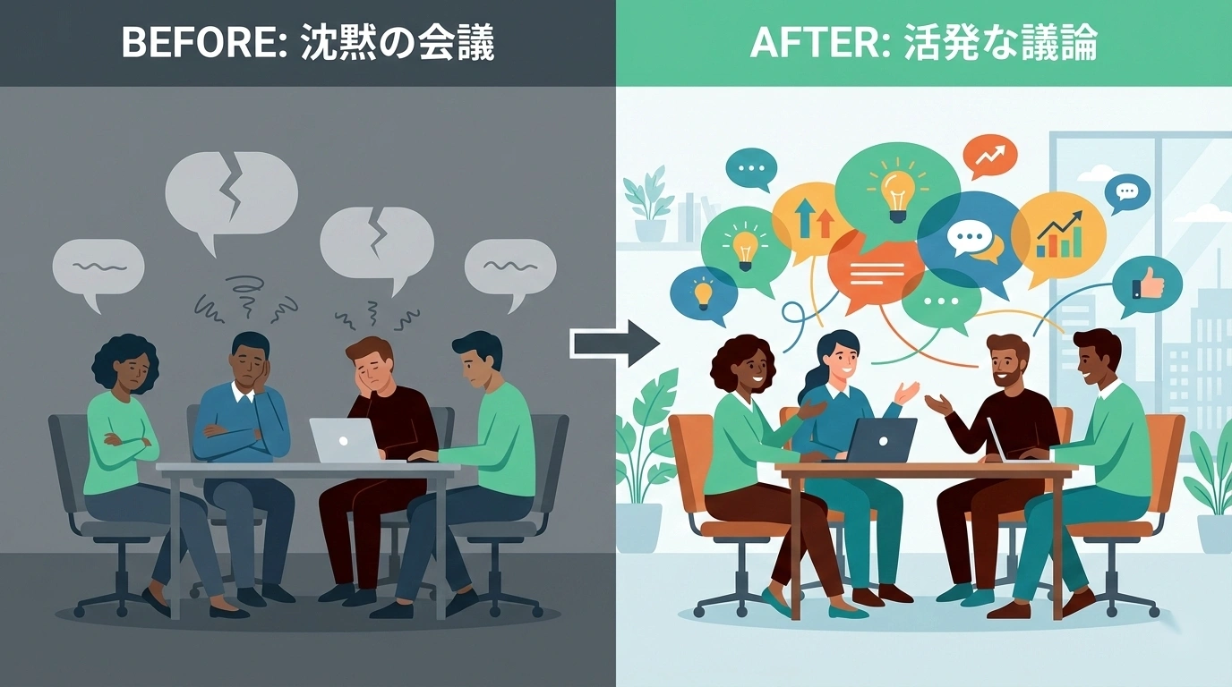 この記事では、心理的安全性を高めることで、沈黙の会議を活発な議論の場に変える方法を解説します。