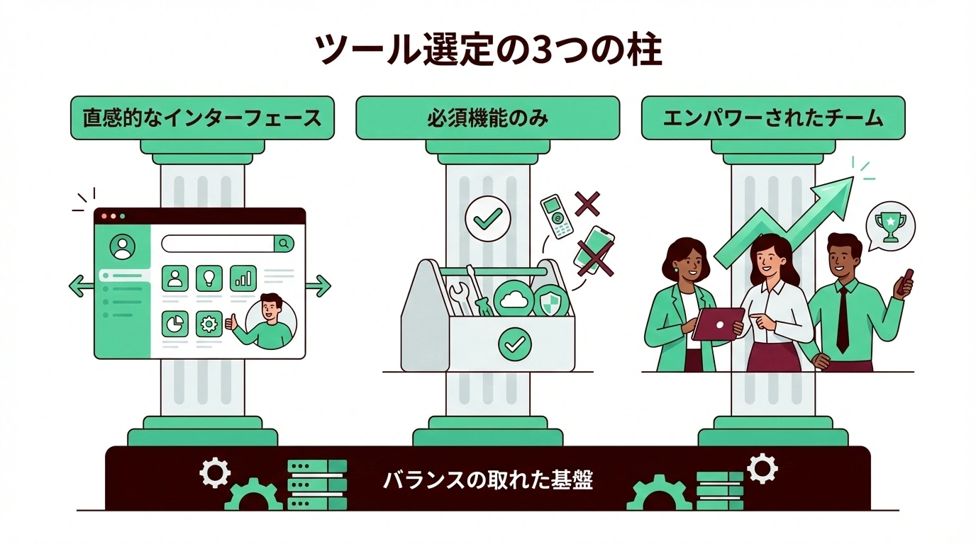 - 「現場が主役」になれるツールを選ぶ:管理者依存を避け、自走できるツールを選ぶ
