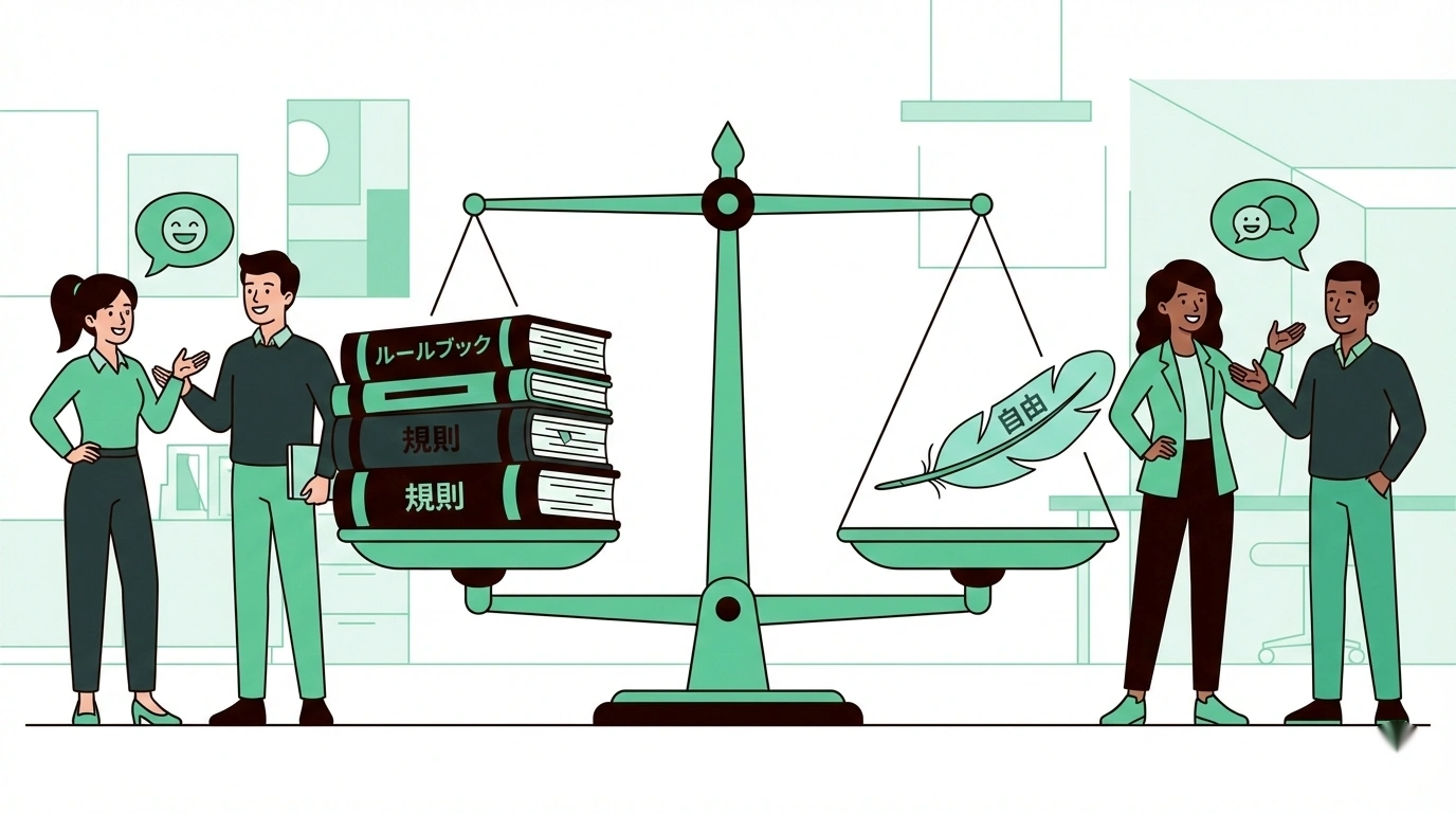 「ルールを決めない」と聞くと無秩序な状態を想像するかもしれませんが、そうではありません。必要最低限の約束だけを共有し、あとは現場に委ねるというアプローチです。