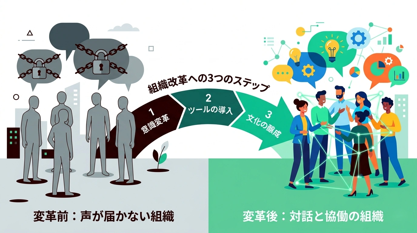 本記事では、「言いたいことが言えない」組織文化を変えるための実践的な3ステップを、研究データと企業事例を交えて解説します。