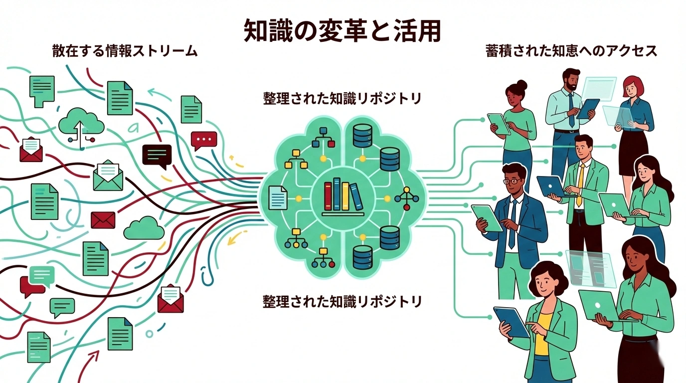 日々のSlackでのやり取り、会議での議論、チャットでの質疑応答——これらのフロー型情報の中には、後から参照すべき価値ある情報が含まれています。