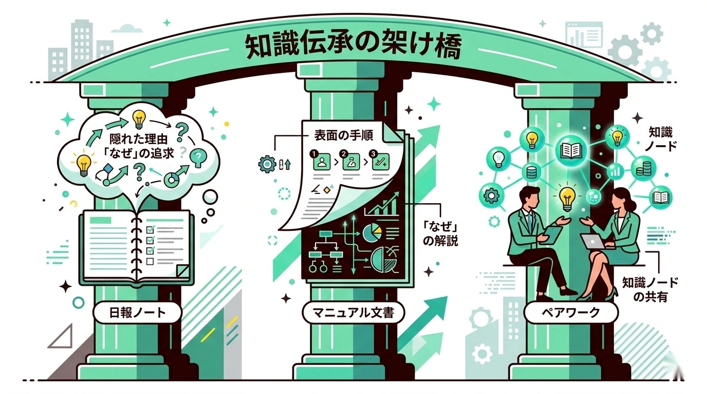 - 「なぜそうするのか」付きマニュアルの作成——手順だけでなく背景を残す