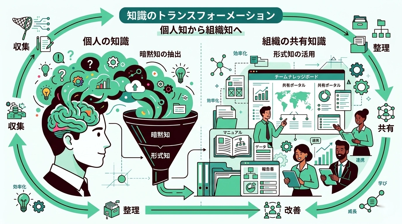 ベテラン社員の暗黙知を形式知に変換することは、属人化を解消し、組織の知的資産を守るための最重要課題です。本記事では、日常業務に組み込める3つのアプローチを紹介しました。