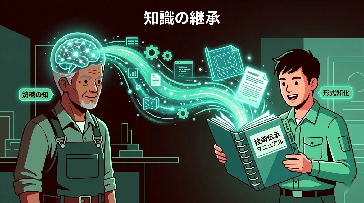 こんな相談を受けることが増えています。ベテラン社員が長年積み上げてきたノウハウ。取引先との微妙な関係性。トラブル時の判断基準。過去の失敗から学んだ「やってはいけないこと」。——これらはすべて、その人の頭の中にしかない暗黙知です。