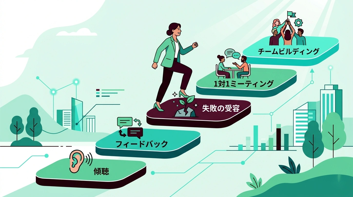 「心理的安全性が大事なのはわかった。でも具体的に何をすればいいの?」——ここからは、人事担当者が主導して実践できる具体的な対策を5つご紹介します。