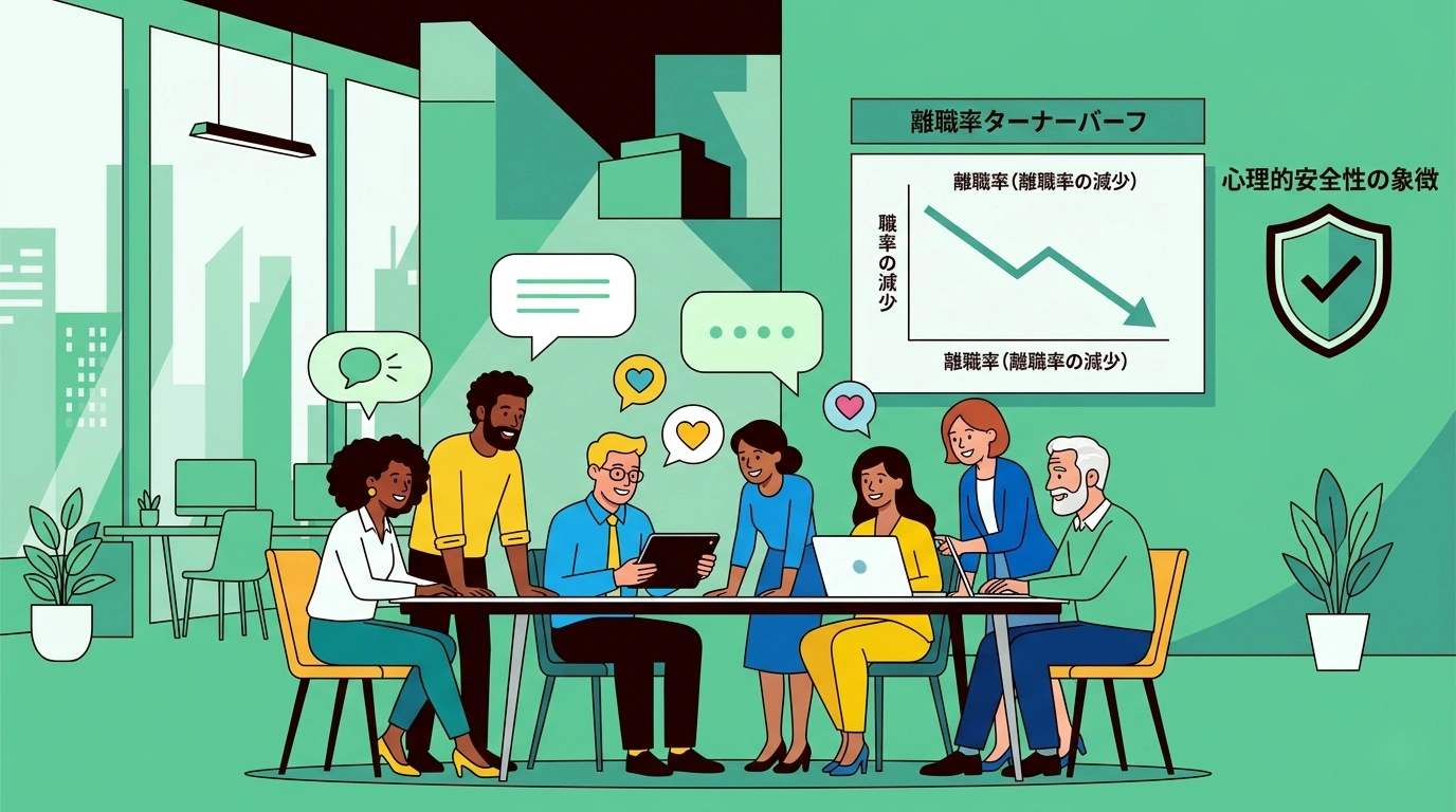 心理的安全性が高い組織では、「わからない」「助けてほしい」と言いやすい空気があります。特に入社直後の社員が孤立しにくくなり、早期離職の防止に直結します。