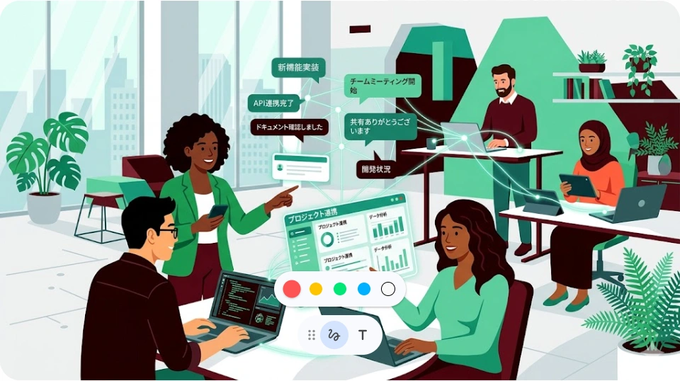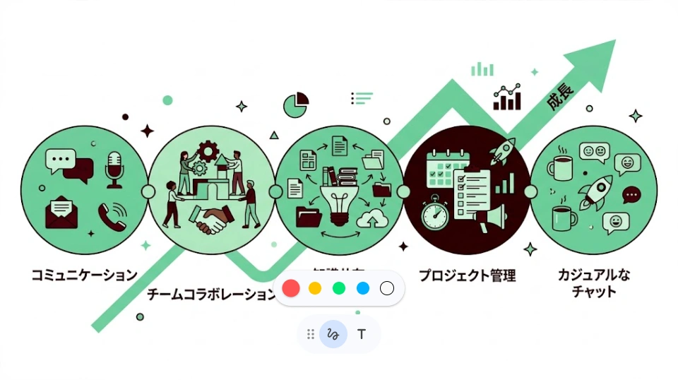 「ランチ報告」「最近読んだ本」「ペット自慢」など、業務とは関係のないチャンネルを作ることで、メンバー同士の関係性が深まります。リモートワーク中心のチームでも、こうしたコミュニケーションが組織の一体感を生みます。